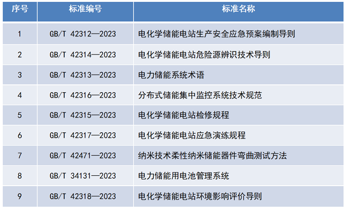 储能中国网获悉,近日,国家市场监督管理总局、国家标准化管理委员会发布2023年第1号中国国家标准公告,批准发布373项推荐性国家标准和6项国家标准修改单。 其中,涉及9项储能国家标准:《电化学储能电站生产安全应急预案编制导则》《电化学储能电站危险源辨识技术导则》《电力储能系统术语》《分布式储能集中监控系统技术规范》《电化学储能电站检修规程》《电化学储能电站应急演练规程》《纳米技术 柔性纳米储能器件弯曲测试方法》《电力储能用电池管理系统》《电化学储能电站环境影响评价导则》,实施日期为2023年10月1日。 |