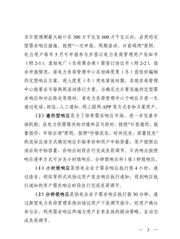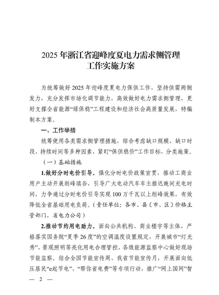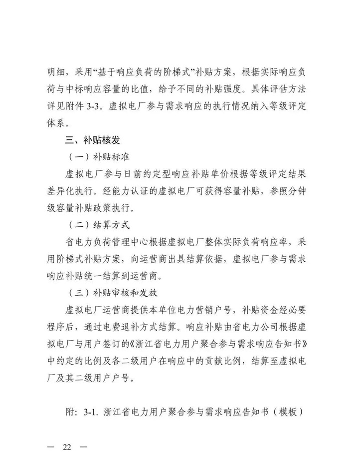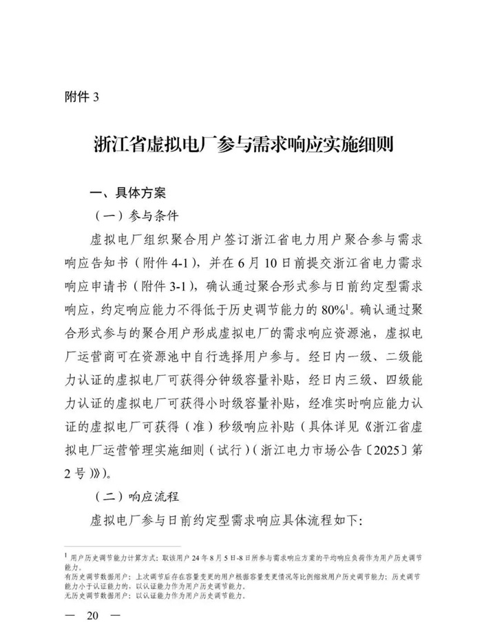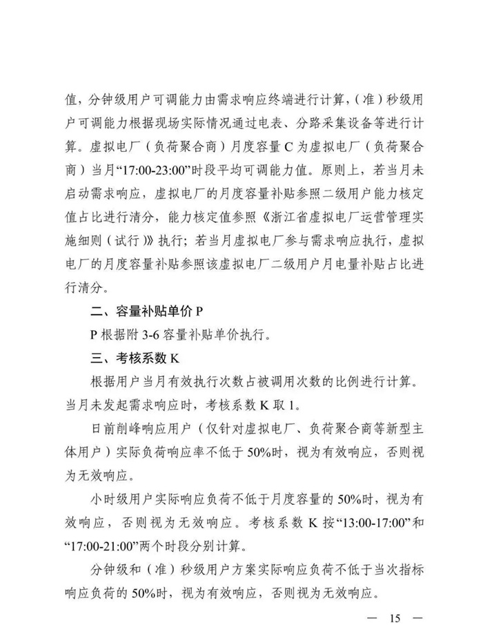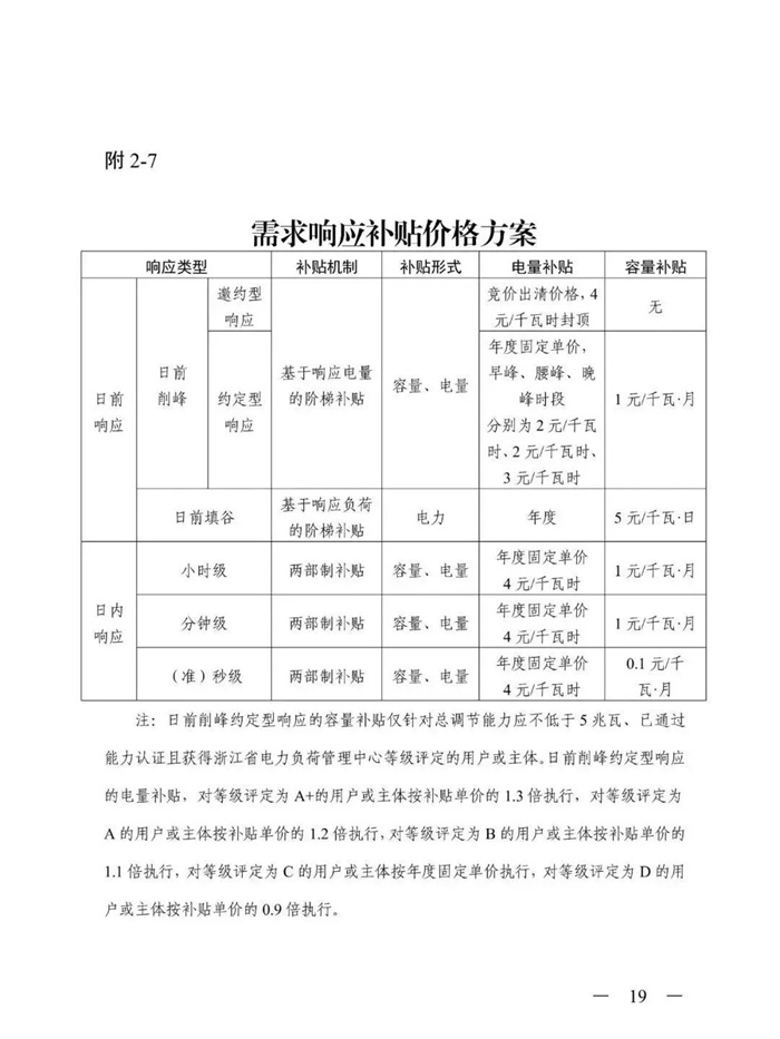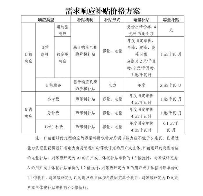 储能中国网获悉,日前,浙江发改委、能源局下发关于印发《2025年浙江省迎峰度夏电力需求侧管理工作实施方案》的通知。文件表示,为更好支撑全省能源“绿保稳”工程建设和经济社会高质量发展,鼓励虚拟电厂、用户侧储能参与响应。 实施方案指出,推动工商业用户主动开展削峰填谷,力争通过分时电价引导实现100万千万以上削峰效果,引导用电量较大型生产企业,将设备检修时段调整至迎峰度夏用电高峰时期,力争具备100万千瓦集中检修能力。 在虚拟电厂、用户侧储能方面 实施方案指出,鼓励虚拟电厂参与响应。根据《浙江省虚拟电厂运营管理细则(试行)》和《浙江电力领域新型主体市场化响应实施细则(试行)》,规范引导虚拟电厂等新型经营主体参与市场化响应、需求响应等业务,实现供需紧平衡、供需缺口等各种场景下常态参与负荷调节,力争调节能力达100万千瓦。 精准实施需求响应措施。按照“一次申报、周期滚动、日前调用”原则,开展负荷资源年度申报、周计划滚动,实现日前调用、日内调用全域平衡。提前储备、滚动修订迎峰度夏需求响应专项方案,力争具备最大600万千瓦约定型响应能力,鼓励用户侧储能参与需求响应。 实施方案要求,落实工业领域负荷资源开发要求,形成纺织、化纤、金属制品等细分行业负荷特性研究报告等成果。全面、准确掌握用户侧储能“家底”,加大用户侧储能装表、计量、采集力度,优化储能充放策略,推动独立参与需求响应。 实施方案提出,完善需求响应市场化竞价机制,省级补贴优先通过分时盈余支出。创新出台针对虚拟电厂等新型市场主体的激励机制,最大限度激发其调节能力。 按照需求响应的使用场景和调用方式,需求响应分为日前响应(含削峰和填谷)和日内响应。日前响应按照响应邀约方式分为约定型响应和邀约型响应。 其中,虚拟电厂参与日前约定型响应补贴单价根据等级评定结果差异化执行。经能力认证的虚拟电厂可获得容量补贴,参照分钟级容量补贴(1元/千瓦*月)政策执行。 其余用户参与日前约定型响应时按照响应电量进行补贴。日前邀约型响应按照单次响应的出清价格和响应电量进行补贴。日内响应执行固定的容量补贴单价和电量补贴单价。填谷响应执行固定的补贴单价。各种响应类型补贴价格方案如下表。