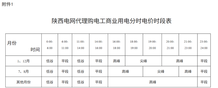 储能中国网获悉,7月23日,陕西省发改委发布关于调整陕西电网分时电价政策有关事项的通知。本通知自2025年8月1日起执行。 通知指出,由电网企业代理购电的工商业用电及农业生产用电分时电价每日分为高峰、平段、低谷三个时段。 高峰时段:16:00-23:00, 低谷时段:0:00-6:00、11:00-14:00, 平 段:6:00-11:00、14:00-16:00、23:00-24:00。 迎峰度夏(冬)期间对由电网企业代理购电的工商业用电实施尖峰电价, 夏季7月、8月尖峰时段为每日19:00-21:00, 冬季1月、12月尖峰时段为每日18:00-20:00。 通知还指出,由电网企业代理购电的工商业用电,平段电价为代理工商业购电价格,在此基础上进行上下浮动。其中: 高峰时段在平段电价基础上上浮70%、 低谷时段在平段电价基础上下浮70%; 尖峰电价在平段电价基础上上浮90%。 原文如下: 陕西省发展和改革委员会关于调整陕西电网分时电价政策有关事项的通知 各设区市发展改革委、杨凌示范区发展改革局,国网陕西省电力有限公司,陕西电力交易中心,各增量配电网: 为充分发挥分时电价信号作用,引导用户削峰填谷、促进新能源消纳,服务新型电力系统建设和保障电力安全稳定供应,根据《国家发展改革委关于进一步完善分时电价机制的通知》(发改价格〔2021〕1093号)等文件精神,结合我省实际,现就调整陕西电网分时电价政策有关事项通知如下。 一、实施范围 (一)除电气化铁路牵引用电以外,由电网企业代理购电的工商业用电(包括大工业用电和一般工商业用电,下同)。 为引导用户公平参与削峰填谷,取消一般工商业用户可选择执行平均电价的政策(即“一般工商业用户可选择执行分时电价政策,也可选择在平段电价基础上每千瓦时加4分钱的标准执行”的相关规定停止执行)。 (二)农业生产用电(不含农业排灌用电,下同)。 (三)居民生活用电(含执行居民电价的非居民用户)分时电价仍按现行规定执行。 二、峰谷时段 (一)由电网企业代理购电的工商业用电及农业生产用电分时电价每日分为高峰、平段、低谷三个时段。高峰时段为16:00-23:00,低谷时段为0:00-6:00、11:00-14:00,平段为6:00-11:00、14:00-16:00、23:00-24:00。 (二)迎峰度夏(冬)期间对由电网企业代理购电的工商业用电实施尖峰电价,夏季7月、8月尖峰时段为每日19:00-21:00,冬季1月、12月尖峰时段为每日18:00-20:00。 三、浮动比例 (一)由电网企业代理购电的工商业用电,平段电价为代理工商业购电价格,在此基础上进行上下浮动。其中:高峰时段在平段电价基础上上浮70%、低谷时段在平段电价基础上下浮70%;尖峰电价在平段电价基础上上浮90%。 (二)输配电价、上网环节线损费用、系统运行费用(包括煤电机组容量电费、抽水蓄能容量电费、辅助服务费用等)、政府性基金及附加不参与浮动。 (三)农业生产用电浮动比例保持不变,即高峰、低谷电价分别在目录销售电价(不含政府性基金及附加)基础上上浮50%和下浮50%。 四、其他事项 (一)参与电力市场交易的工商业用户签订交易合同时,可根据电力现货市场价格信号形成分时段价格。 (二)我委将统筹考虑全省电力供需状况、系统用电负荷特性、新能源装机占比、系统调节能力等因素,动态调整分时电价实施范围、峰谷时段及浮动比例。 五、有关要求 (一)各市区发展改革委和电网企业要精心组织、周密安排,广泛宣传和解读分时电价在促进新能源消纳、提升系统运行效率、保障电力安全稳定供应等方面的重要作用,确保政策平稳执行。电力交易机构要及时开展市场交易规则培训,主动披露市场交易信息。售电公司等市场经营主体应向电力用户有效传导市场价格信号。 (二)电网企业要对分时电价收入情况单独归集、单独反映,月度执行分时电价产生的损益纳入代理工商业购电价格,在次次月向代理购电工商业用户(不含电气化铁路牵引用电)分摊或分享,并于每年4月底前向我委书面报送上年度分时电价执行情况。 本通知自2025年8月1日起执行。《陕西省发展和改革委员会关于进一步完善分时电价机制有关事项的通知》(陕发改价格〔2021〕1757号)同时废止。现行政策与本通知不符的,以本通知规定为准。 附件:1.陕西电网代理购电工商业用电分时电价时段表 2.陕西电网农业生产用电分时电价时段表 陕西省发展和改革委员会 2025年7月21日