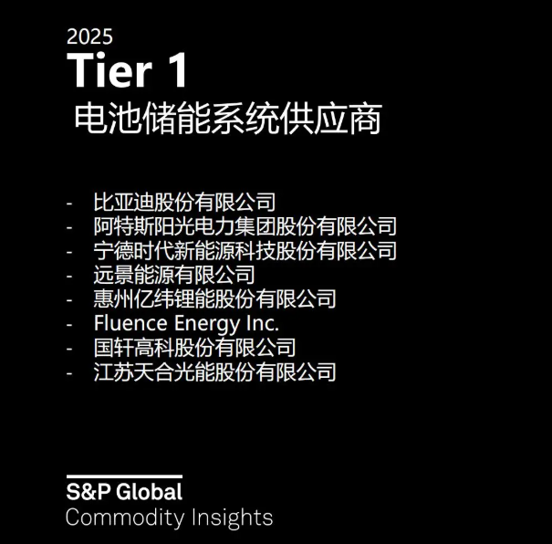 储能中国网获悉,近日,标普全球大宗商品正式发布“2025年Tier1清洁能源技术企业榜单”,揭晓储能等4大领域的关键供应商。 2025年Tier1电池储能系统供应商共有12家企业上榜,其中有8家中企,分别为比亚迪、阿特斯、宁德时代、远景能源、亿纬锂能、国轩高科、天合光能、阳光电源。(排名不分先后,按照官方公布顺序排列) 据了解,本次为标普首次公布榜单。 完整榜单如下: