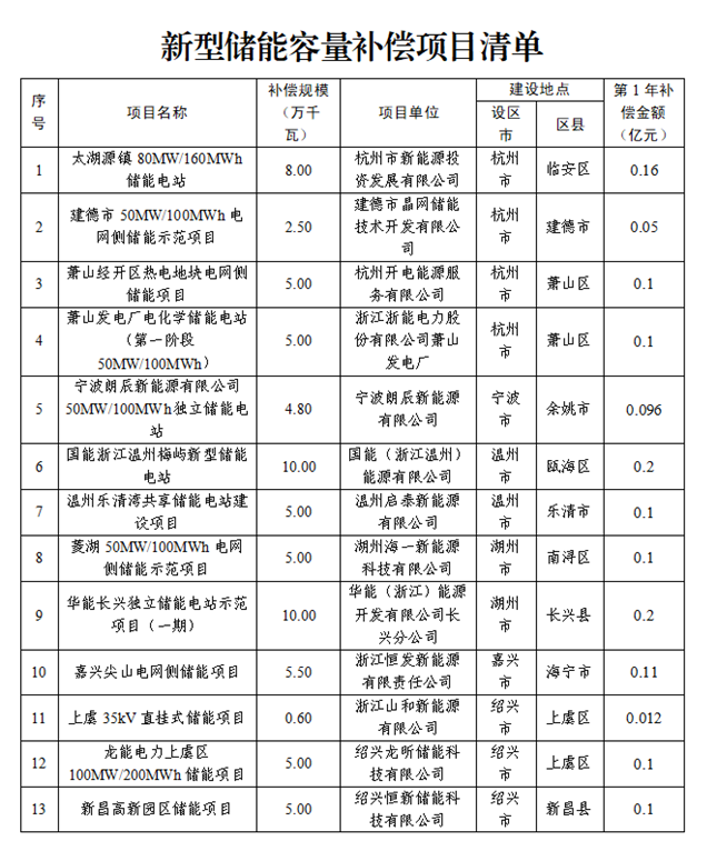储能中国网获悉,近日,浙江省发展和改革委员会 浙江省能源局发布关于发放新型储能容量补偿资金的通知。根据项目清单,本批次共涉及包括华能、国能、浙能电力等17个项目,合计补偿容量规模116.4万千瓦,第1年补偿金额2.328亿元,补偿标准200元/kW/年。其中, 杭州4个项目,补偿规模205MW,首年补偿金额4100万元。规模最大的为杭州市能源集团太湖源镇80MW/160MWh储能电站项目,补偿金额1600万元。 绍兴4个项目,补偿规模156MW,首年补偿金额3120万元。其中,绍兴恒新储能科技新昌高新园区储能项目(一、二期项目)合计容量补偿规模共100MW,补偿金额2000万。 温州、湖州、金华各2个项目。金华2个项目,容量补偿300MW,补偿金额6000万。其中,欣旺达金华武义200MW/400MWh网侧储能项目,容量补偿200MW,补偿金额4000万。 温州2个项目,容量补偿150MW,补偿金额3000万。其中,国家能源集团浙江温州梅屿储能电站,容量补偿100MW,补偿金额2000万。浙江正泰温州乐清湾共享储能电站,容量补偿50MW,补偿金额1000万。 湖州2个项目,容量补偿150MW,补偿金额3000万。其中,华能长兴独立储能电站示范项目(一期),容量补偿100MW,补偿金额2000万。 宁波、嘉兴、丽水各1个项目。宁波能源集团宁波朗辰新能源有限公司50MW/100MWh独立储能电站,容量补偿48MW,补偿金额960万。 原文如下: 浙江省发展和改革委员会 浙江省能源局关于发放新型储能容量补偿资金的通知 各设区市发展改革委、宁波市能源局,省电力公司,各新型储能项目业主: 为贯彻落实省发展改革委 省能源局《关于印发〈新型储能容量补偿资金分配方案〉的通知》(浙发改能源〔2024〕111号)文件精神,经前期申报、审核、公示等流程,现将新型储能容量补偿项目清单(附件1)印发给你们,有关事项通知如下。 一、做好资金发放和监管 请各设区市组织辖区供电公司做好容量补偿资金发放工作,清单内项目容量补偿费用以按月足额抵扣应缴电费形式发放,直至补偿金额发放完毕。省电力公司要高度重视容量补偿资金发放工作,指定专人负责,确保工作落实,做好资金拨付。请省电力公司于每年7月15日前将资金发放情况报送省发展改革委,省发展改革委将会同浙江能源监管办加强资金发放监管。 二、做好后续资金发放审核 请设区市能源主管部门对项目后续2年的年利用小时数达标情况进行初审,每年7月15日前,将项目年利用小时数达标(不低于600小时)情况(附件2)报送省发展改革委,省发展改革委将会同相关部门复核后发放后续2年补偿资金。 浙江省发展和改革委员会 浙江省能源局 2025年12月25日 |