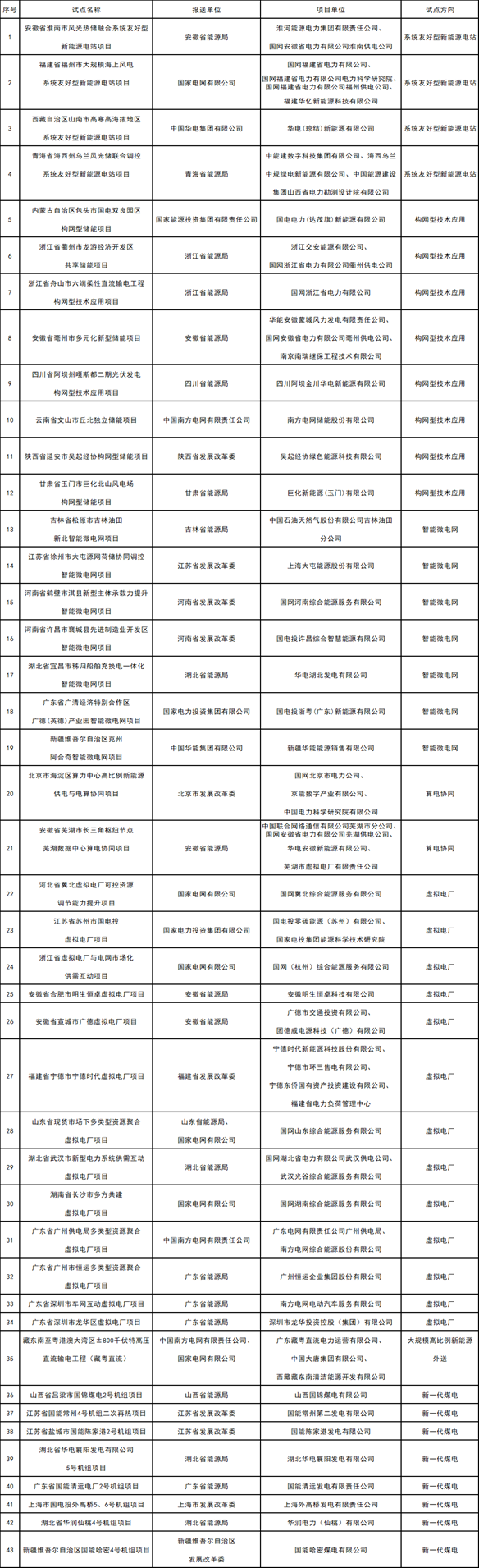 储能中国网获悉,2月26日,国家能源局发布于公布新型电力系统建设能力提升试点名单(第一批)的通知。通知表示,经有关省级能源主管部门和中央企业推荐,国家能源局组织专家评审,并公示征求各方意见,决定将安徽省淮南市风光热储融合系统友好型新能源电站项目等43个项目、河北省张家口市等10个城市列为新型电力系统建设能力提升试点(第一批)。 原文如下: 国家能源局关于公布新型电力系统建设能力提升试点名单(第一批)的通知 国能发电力〔2026〕16号 各省(自治区、直辖市)能源局,有关省(自治区、直辖市)及新疆生产建设兵团发展改革委,北京市城市管理委员会,各派出机构,有关中央企业: 为加快建设新型能源体系、构建新型电力系统,根据《国家发展改革委 国家能源局 国家数据局关于印发〈加快构建新型电力系统行动方案(2024—2027年)〉的通知》(发改能源〔2024〕1128号)、《国家能源局关于组织开展新型电力系统建设第一批试点工作的通知》(国能发电力〔2025〕53号)有关要求,国家能源局组织开展了新型电力系统建设能力提升试点申报和评审工作。现就有关事项通知如下。 一、经有关省级能源主管部门和中央企业推荐,国家能源局组织专家评审,并公示征求各方意见,决定将安徽省淮南市风光热储融合系统友好型新能源电站项目等43个项目、河北省张家口市等10个城市列为新型电力系统建设能力提升试点(第一批)。 二、各试点单位要按照试点方案扎实做好试点建设,依托试点项目应用新技术、新模式,依托试点城市开展系统集成,同步完善配套政策机制。试点依托申报方案中完成审批、核准或备案的项目(包含根据有关规定无需审批、核准或备案的项目)实施,并做好与其它项目的协同。试点相关项目须符合国家及地方项目规模管理等政策要求,不得以试点名义随意扩大建设或改造内容。对推进不力、经相关机构评估未达到试点效果的,按程序取消试点资格。 三、有关省级能源主管部门及中央企业要严格落实主体责任,加强试点项目和试点城市管理,指导督促试点单位积极推进试点建设,与地方能源主管部门共同完善相关支持政策,协调解决试点工作中的问题,持续跟踪建设进度、政策执行、成果成效等,落实电力体制改革、安全管理等要求,确保试点取得预期效果。电网企业要积极支持试点建设,做好接网、调度等支撑保障服务。国家能源局派出机构要结合职责,加强对试点建设的跟踪监管和服务,推动落实试点工作。 四、根据有关文件精神,本试点不得开展授牌、命名等活动。 附件:1.新型电力系统建设能力提升试点项目名单(第一批) 2.新型电力系统建设能力提升试点城市名单(第一批) 国家能源局 2026年2月10日 附件1 新型电力系统建设能力提升试点项目名单(第一批)