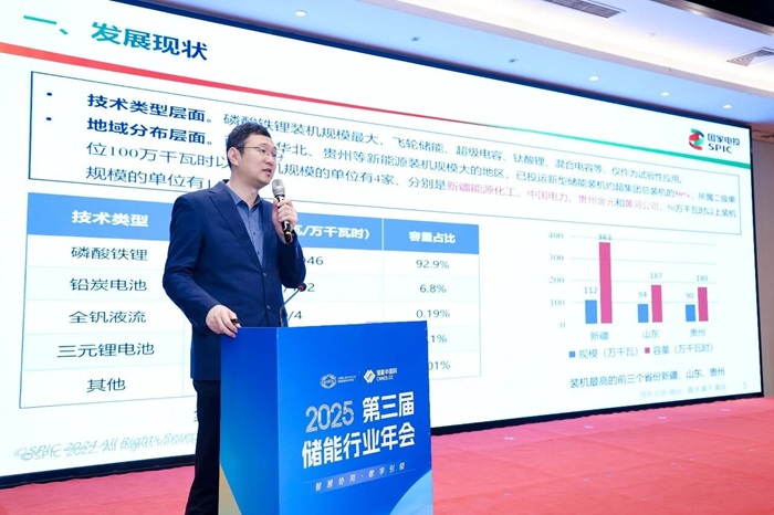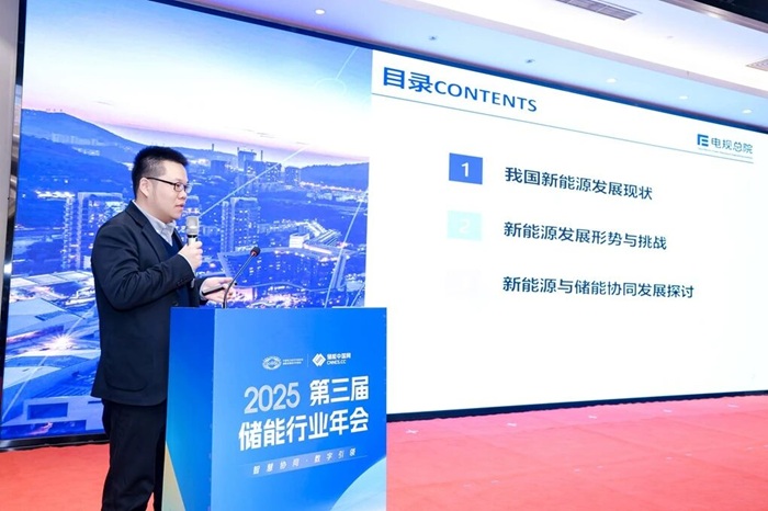 “智慧协同 数字引领 ”2025年12月27日,由中国电力技术市场协会储能设备技术专委会、储能中国网主办,IEEE PES 储能技术委员会(中国)、北京鉴衡认证中心等支持的“2025第三届储能行业年会”在北京成功举办。 会议旨在分析2025年新型储能产业链各环节发展情况并研判2026年产业发展走势;推动新型储能从“跟跑”向“领跑”跃升发展和前沿技术应用,探索解决储能发展瓶颈的思路和方法,搭建行业了解政策信息、技术动态和供需合作平台。会议通过专家主旨报告、主题演讲、专题论坛等环节,内容围绕新型储能并网及场站智控创新技术、长时(混合)储能技术暨数字化储能技术研讨、工商业储能市场开发暨零碳园区建设和CNNES2025储能中国年度创新成果发布方面展开。中国电力技术市场协会储能设备技术专业委员会主任文辉出席大会并致辞,以及行业主管部门、国网、南网、中国科学院电工所、华北电力大学国家能源发展战略研究、国网冀北电力、华能、国电投、中国电建、易储数智能源集团、平高集团、华为、阳光电源、南瑞继保、中电电气集团、天合光能、宁德时代、比亚迪、新源智储、华润电力、海博思创、电规总院、国网新疆电科院、煦达新能源、清研电子、清安储能、新源智储、新能安、日出东方、瑞源电气、远东电池、高泰昊能、许继电力电子、华北电力大学、清华大学、山西安装集团、中移能源、中建八局、媒体等领导、专家近400余人参加。 开幕主持 2025第三届储能行业年会开幕及主旨报告环节由中国科学院电工研究所研究员、IEEE PES储能技术委员会(中国)秘书长唐西胜主持。 嘉宾致辞 中国电力技术市场协会储能设备技术专业委员会主任文辉致辞时表示,储能作为新型电力系统的核心要素,已从“政策驱动”向“市场驱动”跨越,成为保障能源安全、促进新能源消纳的关键支撑。他指出,中国电力技术市场协会是1994年6月在民政部登记的成立的具有独立社团法人资格全国性社团组织,根据中央社会工作部2024年10月28日印发的中社办发【2024】20号文件精神,明确国家能源局为“协会”主要行业管理部门。立足新型储能行业、服务储能设备技术企业、做好政府参谋是中国电力技术市场协会储能设备技术专业委员会的职责。 文辉表示,构建新型电力系统是当前电力行业的主要工作,储能行业服务工作越来越重要。数字化技术的深度渗透,正推动储能系统从规模化升级为具备自主决策能力的智慧化高质量的调节电源;而跨领域、跨企业的协同合作,更是破解产业发展瓶颈、释放多元价值的关键路径。下一步中国电力技术市场协会储能设备技术专委会将围绕做好“电力”文章。一、要以新型电力系统(电力系统是储能的主战场)建设开展行业服务工作;二、帮助先进储能设备技术做好技术、市场推广工作;三、做好储能设备技术专委会调研走访工作,优化储能专委会委员结构,进一步增强专委会凝聚力。 上午主旨报告分享 上午主旨报告环节共有7位行业权威专家分别做分享,对新型储能产业政策、市场回顾、解读及发展趋势分析,储能产业国内外市场机遇与挑战,136号文与新型储能产业发展,构网型储能技术、数智化运营在独立储能场站的探讨与实践以及新型储能产业政策、商业模式研究和大容量储能集成技术、应用等进行全面分析。 华北电力大学国家能源发展战略研究院执王鹏行院长分享了《中国式现代化能源战略新思维与储能发展》主旨报告。他从能源安全新战略到能源强国、中国式现代化能源治理策略、电力市场化及政府治理“十五五”储能发展的认识多角度剖析了加快新型能源体系建设,扩大绿电应用以及峰谷电价退场对新型储能影响进行了分享,并对未来储能市场和政策两方面进行全面解读。 国网冀北电力有限公司电力科学研究院新能源所吴林林所长分享《构网型储能技术初探与冀北实践》主旨报告。他对构网型技术、构网型设备要求并结合冀北构网型技术研究与实践做了深度介绍,其中他表示,我国风光富集的“三北”地区多遵循“大规模集中式开发、高电压远距离送出”的典型模式,常规电源少,网架结构薄弱,弱电网特征突出,新能源需匹配主体电源的支撑需求。构网型控制技术可使新能源发电设备“类同步机化”运行,原理上可实现自同步电压源,功能上具备支撑电网频率/电压的能力,是破解新型电力系统稳定运行难题的重要手段。 在构网型储能变流器硬件在环测试方面,他指出,公司累计完成13个机型的构网型设备性能测试,实现了风/光/储/SVG 4大类设备主流技术路线全覆盖。通过运行特性横向对比,为示范工程设备选型和技术指标制定提供了参考依据。 深圳易储数智能源集团有限公司副总经理冯琢络分享了《数智化运营在独立储能场站的实践与探索》。其中他表示,作为全球电网侧独立储能电站的投资和运营企业,业务涉及储能电站开发、投资建设,储能电站运维交易,储能产品(BMS、PCS、EMS、系统集成)三大板块。在科技研发方面,旗下国峰数智能源软件科技(深圳)有限公司作为储能数字化领域的核心技术服务商 ,国峰软件致力于通过持续的技术创新与数据智能 ,为行业提供安全、高效、可迭代进化的数字化核心 ,引领储能产业迈向全面智能化新时代,助力构建更清洁、更高效的能源体系。深圳易储