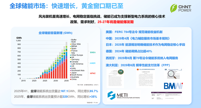随着海内外企业加速全球化布局,容量比拼、系统安全、智能运维与生态协同的行业竞争正全面升级,强烈的降本增效需求推动电芯向更大容量方向发展。截至今年年中,多个头部电芯厂家已推出500Ah+大容量储能电池,预计下半年将有更多企业宣布量产,储能系统集成也将走向“大容量电芯+高集成”新阶段。 在9月17日的世界储能大会上,上海正泰电源系统有限公司(以下简称“正泰电源”)总经理李君重磅发布了行业首个500Ah+组串式交流侧解决方案,彻底解决了“电芯更新、系统难适配”的痛点。作为目前行业内唯一能全面兼容下一代大容量电芯的系统集成商,该方案能完美适配587Ah、588Ah、625Ah等多种500/600Ah+规格的储能电芯,助力电芯技术迭代时整体储能系统快速落地。 更重要的是,该方案通过组串架构、双级拓扑、低压耦合和构网特性四大技术层面的突破,实现了对传统方案的全面升级,并已取得相关UL/IEC认证,可在最短时间内实现系统交付,在效率、成本、可靠性等核心维度为行业树立起全新标杆。 双极+构网增“Buff”,性能提升更安全 风光装机量占比迅猛增长的当下,电网稳定面临严峻挑战,储能正逐步成为支撑新型电力系统的核心技术。全球多国纷纷出台相关政策,美国的FERC 784号法令规范了储能收益机制;德国2024年提出要求储能调频占比超40%;日本明确2025年储能技术为电网稳定核心手段;澳大利亚成功实施频率性能支付(FPP)改革;西班牙颁发将储能系统纳入电网服务的相关法令;中国则在2025年4月发布《电力辅助服务市场基本规则》。 随着政策持续推动和市场需求爆发的共同影响,2025-2027年将成为全球调频储能的集中爆发期! 但储能参与调频辅助服务却并非易事,对储能系统及PCS的性能要求随着场景渗透率提升而持续升级。此前就有关于“新版调频辅助服务考核机制提出‘延迟超过1秒将按全年收益100%比例扣罚’”的传闻。我国国家标准《电化学储能构网型变流器技术规范》公示稿中更明确,构网型储能变流器在频率阶跃扰动过程中,一次调频启动时间应不大于100ms,响应时间应不大于500ms,调节时间应不大于1.5s。 基于此,正泰电源的解决方案展现出了卓越的构网特性。据悉,该方案的频率与电压响应速度小于20ms,远快于30ms的国标标准,能够在瞬间对电网变化做出反应;且在输电侧支持0-100%SOC范围的恒功率输出,并可承受3倍额定短路电流,稳定性拉满。 更关键的是,方案还藏着针对于相变穿越和频率控制的自适应柔性协同“黑科技”。两者相结合,如同“电网医生”一样,能实时捕捉电网强度的细微变化,通过动态调整无功输出,精准化解SCR跳变带来的电网波动;再结合其主动构建的“虚拟惯量”支撑,可智能匹配电网随时可能出现的扰动,让频率响应既保持毫秒级的快速性,又能始终稳定在安全区间。 值得关注的是,该方案通过自适应阻尼技术,能根据电网实际状态自动调整,快速抑制振荡幅值,并通过多频段虚拟阻抗技术,进行控制器优化与阻抗重塑,精准适配不同频段特性,有效消除宽频振荡隐患,灵活适配复杂电力环境。多项技术的加持下,不仅让方案抗风险能力更强,还能帮用户在辅助服务市场多赚收益。 安全不止一面,正泰电源通过对双级架构的优化,令行业头疼的“低电量时电压撑不住”问题迎刃而解。方案中,直流侧电压适配范围大幅拓宽,支持1.3倍高穿电压稳定运行,就算是低SOC工况或极弱电网环境下,也能持续为电网提供可靠支撑。 为实现从“被动断电”到“主动安全”的安全升级,正泰电源为方案搭载“故障预警+快速隔离”的双保险机制:通过毫秒级故障电流双向精准切断,可有效规避电压骤升引发的电池击穿风险,筑牢系统安全防线。 这些特性使正泰电源的方案,基于统一硬件平台,通过软件定义支持惯量响应、一次调频、宽频振荡抑制等多项构网技术。即便遇到电网电压波动等复杂情况,也能减少对系统的伤害,让储能系统跑得更稳、更可靠。 “低压耦合+模块化”双维降本增效 拉满储能投资性价比 当前,为满足储能降本与度电收益提升的核心需求,储能系统正朝着大容量方向演进,PCS能力架构也在不断迭代升级。据北极星储能网观察,今年组串式PCS已成为主流产品,市场需求快速攀升。尤其在今年上半年央国企集采项目中,组串式储能需求占比已达20%-25%。 据了解,集中式储能中多簇并入同一PCS,簇间不一致性容易被放大,影响系统整体运行性能与收益。与之相比,组串架构在储能系统中具备显著优势,可实现更优投资回报、更高系统可用性及灵活扩容的目标。正泰电源的方案紧扣这一趋势,以“减法”思维剥离冗余设计,全面提升投资性价比。 于储能投资而言,肯定是既想“省钱”又想“多赚”。正泰电源方案真正实现帮助用户把“每一分钱都花在刀刃上”。组串式架构使可用容量提升7%,首年部署后,补电或扩容均可通过新增电池簇轻松实现。其采用一簇一管理模式,实现SOC差异自动补偿,无需主动均衡电路,提升系统循环效率;系统模块化程度高,故障互不串扰,可用度达98%以上。这意味着相同投入可获得更多储能容量,实现资源高效利用。 提升储能系统投资经济性,效率和成本得两手抓。“低压耦合”正是正泰电源实现这一目标的核心元素,800Vac低压耦合技术可使转换效率达到95%以上。与中压耦合不同的是,其无需额外配置箱变,系统