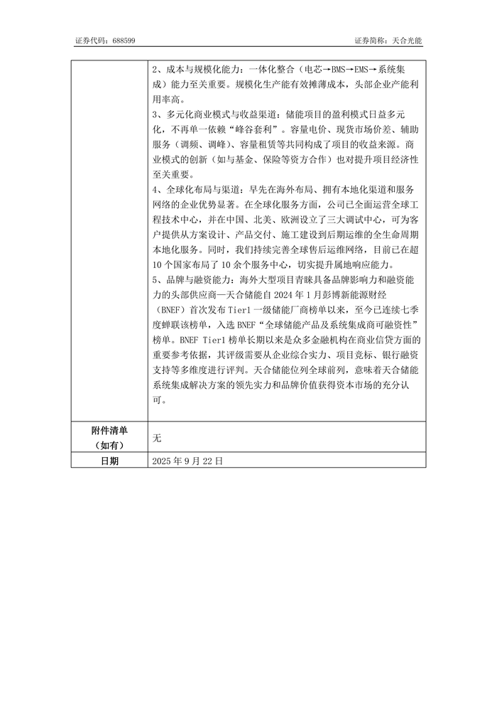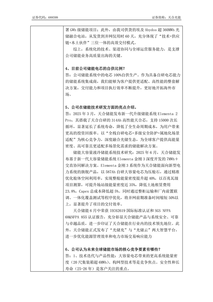 储能中国网获悉,9月22日,天合光能发布2025年9月19日投资者关系活动记录。其中,公司接待人员姓名及职务显示,杨豹已升任天合光能储能事业部总裁、光伏事业部副总裁。另外,目前担任天合光能储能事业部副总裁及储能事业部供应链中心的负责人为冯玟生。张春涛,任天合储能(滁州)有限公司总经理。 杨豹负责天合储能全业务线 据悉,杨豹此前职务包括了天合光能全球营销总裁、兼中国区负责人。其本人的职务提升变动,就在近期。他本人负责天合储能整个事业部的管理。由于出色的储能市场营销能力,促进了天合在这个新兴行业中的发展,因此这可能是其职务得到提升的重要因素之一。 杨豹在2013年,就已经入职天合光能。此前他也有过多家企业的工作经历:曾在晶澳科技、天华阳光等作为职业经理人出现。 其在天华阳光曾担任供应链管理副总裁兼中国区总裁,负责过组件供应网络、战略合作伙伴及中国电站项目开发。在欧贝黎新能源科技股份有限公司也担任过运营副总裁。他本人获得了中国人民大学MBA学位。 2024年左右,天合光能进行了组织架构的全面调整,目前分为四个主要业务:光伏产品(含组件业务)、储能业务、系统解决方案(如支架、分布式系统即天合富家等、集中式电站、其他)、数字能源业务(新能源运维)、新能源发电以及其他。 2024年,天合储能板块营收为23.35亿,同比上年增长19.1%,毛利率为近13%。另一板块数字能源服务的营收为19.63亿,同比营收增幅近100%。这两个板块营收增幅较快。组件所在的光伏产品营收依然是最高的,达557亿;系统解决方案营收为188亿,毛利率为18.4个百分点。 附:天合光能:2025年9月19日投资者关系活动记录表