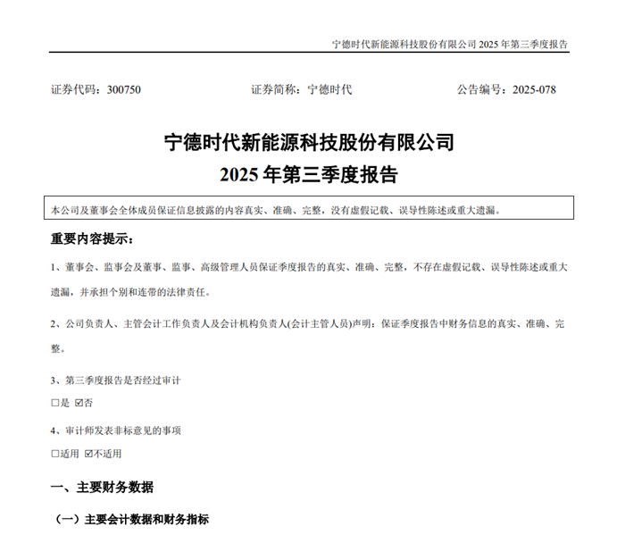 储能中国网获悉,10月20日,宁德时代披露2025年三季报。公司第三季度实现营业收入1041.86亿元,同比增长12.90%;归属于上市公司股东的净利润185.49亿元,同比增长41.21%。