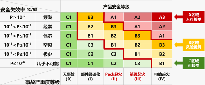 产品安全等级定义(RMAP) 华为数字能源联合提出的评估体系将储能系统安全风险由高至低分为A(不可接受)、B(风险缓解)、C(可接受)三个等级,并明确了各等级对应的失效概率要求。其中,A级风险极高,系统安全风险完全不可控,重大安全事故概率极高;B级风险较高,必须通过持续优化产品设计与引入创新技术以降低风险;C级为安全风险总体可控,可有效避免整站火灾等严重后果。 本项目基于安全量化评估体系,对电化学储能系统开展系统性安全风险评估,识别出影响系统安全性的关键因素,并通过核心安全技术实现产品安全等级的大幅提升。其中四项核心安全技术包括: [1]研发了高精度智能主动安全预警技术,基于双Decoder多频分层架构,实现了故障预警算法的工况覆盖度的跃升,查全率不低于95%; [2]首创了正压阻氧与定向排烟架构,研发了具备耐高温、高正压、高气密、耐腐蚀绝缘防护的高安全PACK,在8颗电芯同步热失控条件下,实验验证PACK不起火、不扩散; [3] 首创了智能组串式储能双级变换架构,实现了全SOC范围电网暂态过电压时电网电流不反灌、支持恒功率输出支撑电网稳定恢复, 确保储能系统设备和电网安全; [4] 首创了高温耐久绝缘与实时监测技术,实现了电解液泄漏高阻态,结合全范围实时绝缘检测,抑制了绝缘失效导致拉弧起火的风险。 项目相关成果已在西藏开投阿里构网型储能电站、乌兹别克斯坦奥兹构网型储能电站、沙特红海100%新能源微网等国内外重大项目中实现规模化应用。