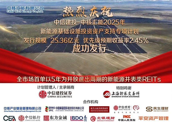 中核汇能成功发行三期25.36亿元新能源权益型并表类REITs,创新引领资产盘活新模式。 储能中国网获悉,11月26日,中核汇能2025年新能源基础设施投资资产支持专项计划(权益型并表类REITs三期)于上海证券交易所成功发行,本期产品发行规模达25.36亿元,期限22年,优先级证券获得AAA信用评级,优先级预期收益率2.45%,创下中核集团并表类REITs系列产品的新低纪录。 本项目作为全市场首单设定5年开放退出周期的新能源权益型并表类REITs,自10月21日完成中核集团内部决策至11月26日成功发行,历时仅月余,体现了高效的项目执行能力,并获得了上海证券交易所的大力支持与市场投资者的积极认购。 在136号文推动新能源全面参与电力市场的背景下,中核汇能深入研判政策对资产运营的影响,严格筛选底层资产。最终入选的资产为公司全资子公司运营管理的5个光伏发电项目,总装机容量达43.70万千瓦,确保了底层资产包的优质与稳定。 通过三单类REITs的连续成功发行,中核汇能不仅有效盘活了存量资产、压降了资产负债率,更是初步构建了“投建运融”卓越资产资本双向循环体系,为公司在新能源领域的高质量稳步发展提供了强有力的资本动力。 未来,中核汇能将继续完善多层次资产证券化投融资模式,通过REITs业务的持续创新不断提升投资运营效率,深入探索新能源开发与高效利用的新路径,坚定不移地履行中核集团发展非核清洁能源的使命,为助力实现“双碳”目标和建设“美丽中国”贡献“中核力量”。 |