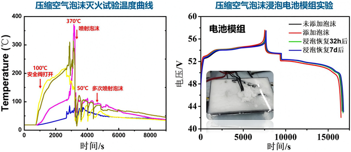 图2 高压直挂储能系统架构 2023年,该技术示范应用于北方上都风电基地储能项目一期,实测充放电效率达91.85%,较低压储能系统提升约4个百分点。2024年,在青海海南州建成全球海拔最高(3000米)、规模最大(600兆瓦时)的高压直挂储能电站,标志着该技术进入大规模应用阶段。2024年6月,经中国电机工程学会鉴定,认为“35千伏/25兆瓦高压直挂电池储能系统”成果达到国际领先水平。 二、构网型储能 随着新能源与电力电子设备渗透率持续提升,电力系统呈现惯性降低、强度减弱的趋势,电网稳定性面临严峻挑战。构网型储能可模拟同步发电机的外特性,具备自主构建电压和频率的能力,可主动支撑电网电压与频率,提升系统惯量与短路容量,成为增强高比例新能源电网稳定性和灵活性的关键手段。 清能院持续深入构网型储能技术研发,先后成功研制构网型模块化PCS和自适应主动支撑型高压直挂储能系统,牵头发布了《构网型储能变流器技术规范》团体标准。 传统低压储能受限于PCS单机容量小,在构网运行时需协调数百台电压源型PCS实现毫秒级协同控制,技术难度极大。而高压直挂储能单机容量可突破20兆瓦,百兆瓦级电站仅需数套系统即可构建,极大简化了整站控制架构,显著提升了系统响应速度和可靠性。凭借与主电网电气距离更近、响应速度快、控制稳定、无需变压器等优势,高压直挂储能高度契合新型电力系统对高功率、快速主动支撑的构网储能需求,有望成为构网型储能的主要发展方向。 三、储能系统安全 (一)消防安全 电池热失控风险是储能行业的共性挑战。为抑制热失控蔓延,电站普遍配备专用消防系统。然而,传统气体灭火剂如七氟丙烷、全氟己酮存在降温效果差、抗复燃能力弱等问题;液氮虽可快速降温和隔绝氧气,存在泄露、成本高、部署复杂等缺点;水基灭火剂虽具备高效降温、环保与经济性优点,却受限于绝缘性能较差。 针对以上痛点,清能院自主研发了压缩空气泡沫灭火系统。该系统通过生成低含水量的气液两相灭火介质,有效融合气体与液体灭火优势,可实现秒级灭火、快速降温,并能保证12小时以上持续抗复燃。该系统所产泡沫电导率极低,对电池电学性能无影响,从根本上避免了因绝缘问题引发的二次电气事故。
