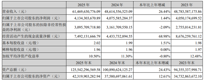 储能中国网获悉,3月27日晚,亿纬锂能发布2025年年报。2025年,亿纬锂能:营业收入614.7亿元,同比增长26.44%,毛利率16.17%。归母净利润41.43亿元,同比增长1.44%。 具体如下: