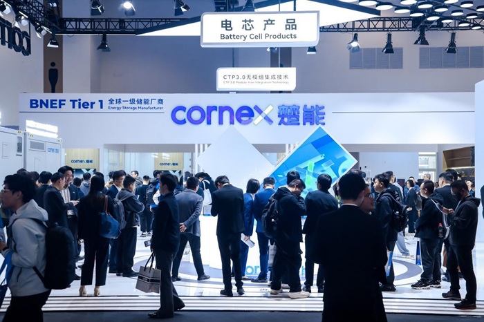 性能参数方面,在磷酸铁锂体系下,588Ah电池实现了质量能量密度190Wh/kg、体积能量密度419Wh/L,能量效率96.5%的性能领跑。通过应用正极多级粒径调控、负极稳定骨架设计、电解液自修复技术三大核心技术,588Ah电池实现了超过12000次的循环寿命,并实现高容量保持率。 安全性方面,楚能在产品设计阶段便瞄准大规模储能应用场景的实际痛点,从电池本征安全到系统级防护,通过结构创新与材料创新的双重发力,为588Ah电池构建了全栈安全体系,为储能系统的长期稳定运行筑牢根基。 可靠性方面,588Ah电池平移了楚能已量产电池的成熟材料体系与制造工艺,其核心可靠性已通过批量验证,同时依托成熟的供应链与规模化生产体系,能够为客户带来“可预期、可信赖”的稳定品质。 值得关注的是,在行业对规模化优质产能需求日益突出的背景下,楚能已为588Ah电池布局了超过200GWh的产能规划,这将为588Ah电池的规模化量产提供坚实的保障。 CTP3.0效率突破60JPH,赋能6.25MWh系统大规模安全应用 588Ah电池在性能端奠定了坚实基础,而CTP3.0无模组集成技术,则是将其安全高效地应用于6.25MWh系统的关键一环。楚能通过“588Ah电池+CTP3.0平台+CORNEX M6储能系统”组合方案,重点展示了其在储能系统高效集成领域的创新应用。