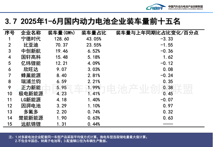 界面新闻记者 | 高菁 今年上半年,国内储能电池出口持续强劲。 7月10日,中国汽车动力电池产业创新联盟发布最新数据,今年1-6月,国内动力和其他电池产、销量分别达697.3 GWh和659 GWh,分别同比增长60.4%和63.3%。 其中,动力电池累计销量占总销量73.7%,为485.5GWh,同比增长51.6%;其他电池累计销量为173.5 GWh,占总销量26.3%,同比增长108.5%。其他电池主要指储能电池,包括少量小动力用电池。 上半年,国内19.3%的动力和其他电池销量为出口量,达127.3 GWh,同比增长56.8%。该增幅主要受到其他电池出口量的带动。 同期,其他电池累计出口量同比增长174.6%,达45.6 GWh,占总出口量35.9%,较上年同期提高了超17个百分点;动力电池累计出口为81.6 GWh,占总出口量64.1%,累计同比增长26.5%,增幅低于其他电池。 在全球能源转型加速以及各国电力系统建设需求的带动下,今年上半年,海外储能需求保持高速增长。今年以来,已有包括宁德时代(300750.SZ)、比亚迪(002594.SZ)、瑞浦兰钧(00666.HK)在内的多家中国电池企业官宣获得海外大单。 据中信建投预计,2025年,全球储能新增装机将同比增长42.2%,达到266 GWh。中、美、欧、海外其他地区分别约为120 GWh、40 GWh、35 GWh、71 GWh。其中,亚非拉地区增速最快。 图片来源:中国汽车动力电池产业创新联盟 具体到企业,今年1-6月,宁德时代稳坐国内动力和其他电池出口量榜首,比亚迪、中创新航(03931.HK)位列其次。 国内动力和其他电池出口量排名前十的企业中,比亚迪、中创新航、国轩高科(002074.SZ)、蜂巢能源、瑞浦兰钧的同比增速超过平均增速,其中蜂巢能源增速最快,达248.4%。 值得注意的是,包括宁德时代、中创新航、国轩高科、瑞浦兰钧在内的多家企业的动力和其他电池出口增速,均快于动力电池出口增速。 以宁德时代为例,其动力和其他电池的合计出口量增速达到了50.8%,但动力电池出口增速仅为12.4%。这意味着,这些企业以储能电池为主的其他电池出口增速增速远超动力电池。 电池材料类别方面,上半年出口的其他电池均为磷酸铁锂电池。出口的动力电池中,58.8%为三元电池,40.6%为磷酸铁锂电池,磷酸铁锂电池的占比同比小幅提升了0.9个百分点。 磷酸铁锂和三元为当前主流的两种锂电池技术路线。相比三元电池,磷酸铁锂电池具有低成本、高可靠性和低火灾风险等优势,但其能量密度较低。 由于三元电池安全性较差,且成本更高,因此不适合用做储能电池。目前,国内生产的储能电池基本均采用磷酸铁锂技术路线。 在动力电池领域。海外市场此前将三元电池视为主流路线。很多海外头部动力电池生产商此前并不看好磷酸铁锂技术路线,认为其不适合高档汽车市场,主要专注于三元电池的生产。 在中国,得益于创新技术,磷酸铁锂电池的优势得到了充分凸显。2021年7月起,磷酸铁锂电池的市场份额超越三元电池,此后一直保持领先。 由于磷酸铁锂电池在价格竞争力和热安全性方面的优势,当前全球越来越多的主机厂都开始选择采用磷酸铁锂电池。截至目前,磷酸铁锂电池的主要生产商为中国企业。 今年上半年,国内动力电池累计装车量299.6 GWh,同比增长47.3%。其中,磷酸铁锂电池累计装车量244 GWh,占总装车量81.4%,同比增长73%;三元电池累计装车量55.5 GWh,占总装车量18.5%,同比下降10.8%。 在国内动力电池市场,磷酸铁锂电池市占率于去年12月首次突破80%。今年以来,磷酸铁锂电池的占比持续提升,除1月外,市占率均超过八成。 上半年,国内磷酸铁锂动力电池榜首依旧由宁德时代稳坐。其磷酸铁锂动力电池装车量达89.79 GWh,占据36.8%的市场份额,领先第二名比亚迪7.97个百分点。 比亚迪上半年99.96%的动力电池装车量均由磷酸铁锂电池贡献。不同于宁德时代,比亚迪已在2020年放弃三元,开始主攻磷酸铁锂电池。 在三元电池方面,宁德时代上半年的装车量为38.81 GWh,同比减少了5.04%。不过,其市占率却由68.02%进一步上升至70.93%。 图片来源:中国汽车动力电池产业创新联盟 整体看,上半年,宁德时代和比亚迪分列国内动力电池装车量前两位。两家企业合计占据国内66.6%的市场份额,与其他企业形成“断崖式”差距。 其中,宁德时代上半年动力电池装车量达128.6 GWh,市占率为43.05%;比亚迪装车量为70.37 GWh,市占率为23.55%。 排名动力电池装车量榜单第三至第五位的,依次为中创新航、国轩高科与亿纬锂能(300014.SZ)。榜单前五名的企业中,除国轩高科外,其余企业市占率均出现了同比下滑。 国轩高科今年以来表现强势,这家市占率曾经排名徘徊在国内第四、五位的二线电池厂商,今年曾一度顶替了在第三名稳坐整整两年半的中创新航。且国轩高科还在今年一季度首次挤进海外动力电池装车量前十榜单。 今年1-6月,欣旺达(300207.SZ)、蜂巢能源、瑞浦兰钧、正力新能、极电新能源国内动力电池装车量依次排名第六至第十位。除蜂巢能源外,其余企业市占率均同比上升。 |